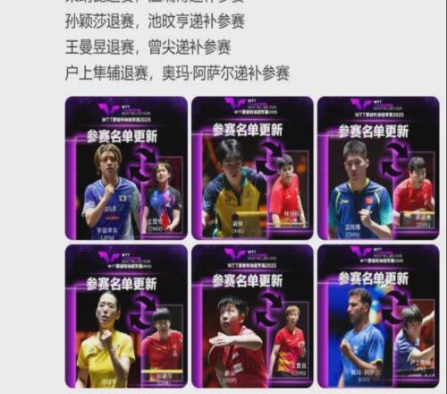 2025-10-22北京时间今天(10月21日)19时,WTT世界乒联发布WTT蒙彼利埃冠军赛2025参赛球员更新:王楚钦退赛,宇田幸矢递补参赛;林...