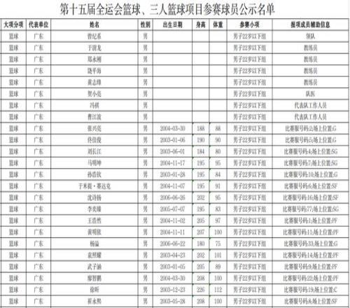 雷速体育10月14日宣 中国篮球协会今天公示第十五届全国运动会篮球项目决赛阶段球员名单,崔永熙、徐昕将代表广东队参加22岁以下组比赛。
