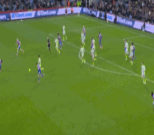 周旋了40分钟,水晶宫防守出现了问题。也许是上半时就要结束,也许是体力下滑了,这个时间主队在布置防御时漏洞很多,可不像是开赛时那么紧密、反击那么迅速了。