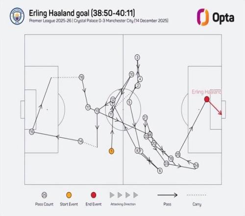 哈兰德在一蹴而就后帮助曼城3-0完胜,自己也是提升了赛季进球数。当然,这样的进球对哈宝来说实在无趣的,破门后他是没庆祝的。