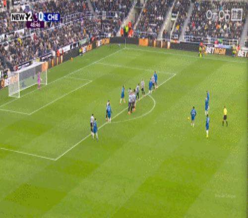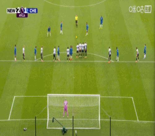 他开出的任意球越过人墙,绕过了纽卡门将拉姆斯代尔,皮球击中左侧立柱内侧弹入球门,这是他在英超联赛中为切尔西打进的第二个直接任意球。